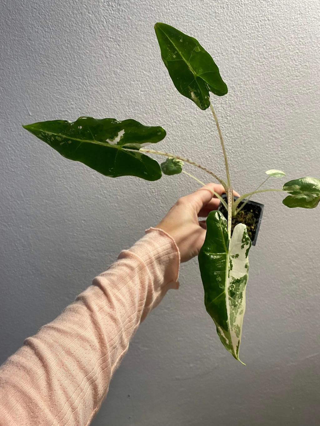 Amazingly packed, beautiful variegation and fast growing. My favourite alocasia.